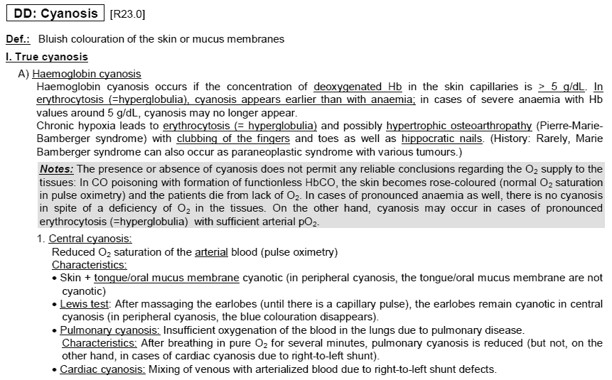 • Name of the disease in frame, ICD-code in addition, clear structure: Synonym, Definition, Epidemiology, Aetiology, Clinic, Differential diagnosis, Diagnosis, Therapy, Prognosis, etc., to get the necessary information quickly: